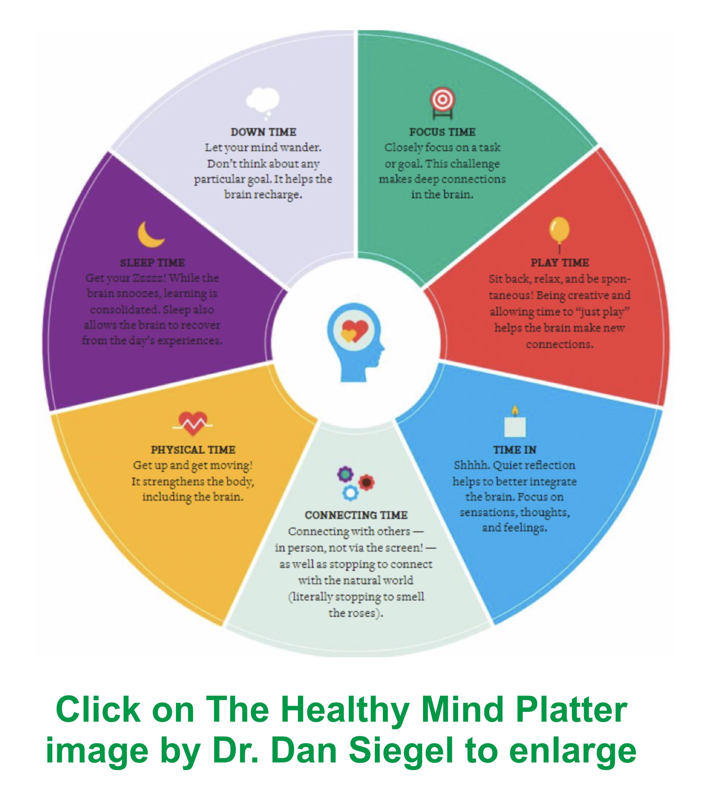 This platter contains the 7 daily activities that make up a complete set of ‘mental nutrients’ needed to keep our brains and relationships functioning at their best.